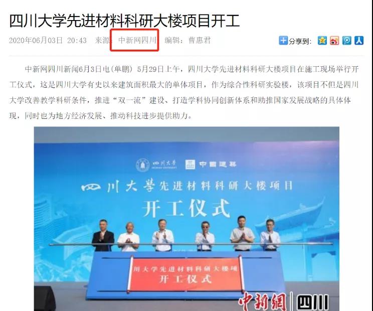 根据中新网的报道,2020年5月29日,我校先进材料科研大楼项目正式在望江校区开工建设。该项目于2018年初开始筹建,9月获得教育部立项批复,计划投资7.4亿元,总建筑面积约11.6万平方米。该项目于2019年被列为国家发改委重点项目库和教育现代化推进工程项目库项目。项目将为学校筹建世界高分子中心、先进高分子材料国家重大创新基地、生物医学工程和先进功能材料等学科发展提供坚实的基础;为学校建设一流学科,打造高水平国际研发平台,培养具有国际竞争力的一流人才,服务国家重大战略,提供强有力的支撑。