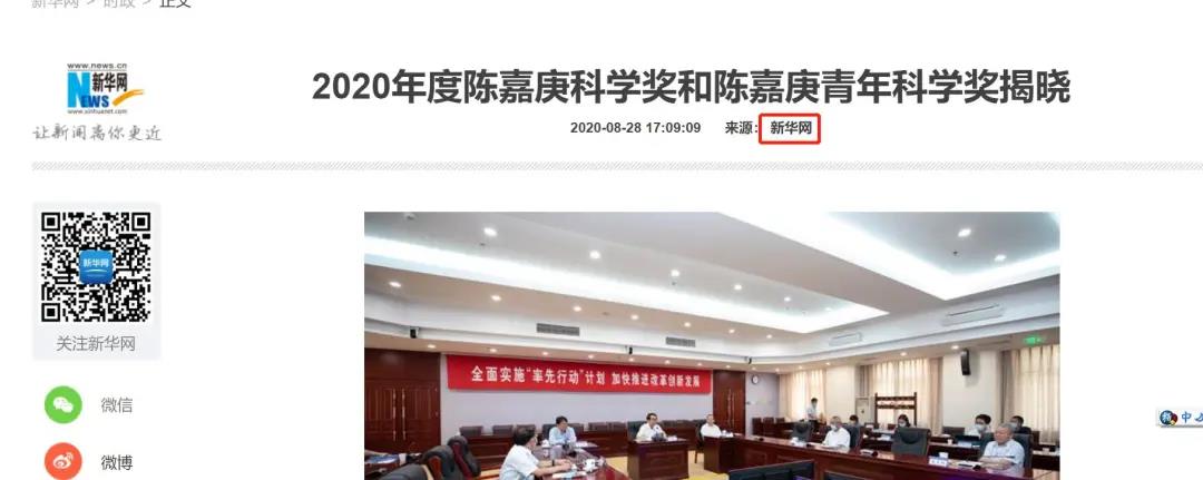 2020年8月28日下午,新华网、人民网报道了中国科学院在北京召开新闻发布会。会上公布了2020年度陈嘉庚科学奖获奖项目和陈嘉庚青年科学奖获奖人。我校冯小明院士荣获本年度陈嘉庚科学奖中的化学科学奖,获奖项目名称为“新型优势双氮氧配体和高效不对称催化”。
