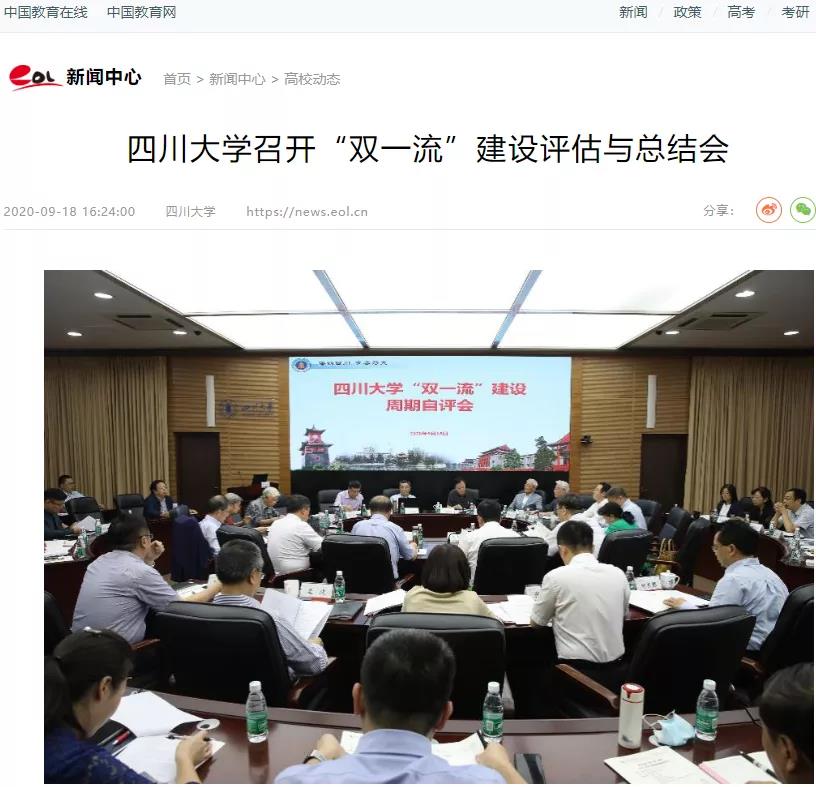 2020年9月18日,中国教育在线对我校召开“双一流”建设评估与总结会进行了报道。报道指出,这是在前期12个重点建设学科(群)分别组织国内知名专家进行评估总结的基础上,学校组织的对总体上“双一流”建设的专家评估与总结会。专家组认为,通过“双一流”一期建设,学校的办学水平和办学能力有了显著提高,为国家和区域经济社会发展做出了重大贡献、起到了不可替代的作用,探索了一条在西部创建世界一流大学的道路。