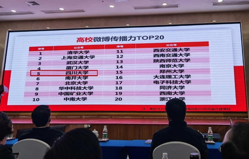 2020年,学校新闻舆论工作水平和各媒体平台传播力大幅提升,与社会媒体的沟通合作进一步增强。12月在教育部新闻办举办的“2021教育政务新媒体年会”上发布的“高校微博微信传播力指数“TOP20”榜单中,我校官方媒体影响力指数排名显著提升,“大川”微博排名全国高校第5位,“大川”微信排名全国高校第6位,官方微信10w+文章数达11篇位居全国高校第5位。年会还发布了2020教育政务新媒体年度案例,我校报送的新媒体作品《媒体融合讲好川大战疫故事,聚焦三“度”上好抗疫思政大课》被评为“2020教育政务新媒体年度案例”。