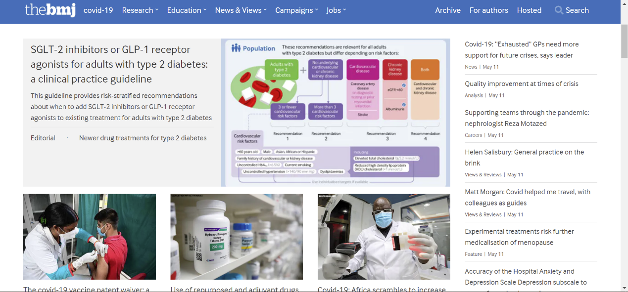 5月11日,《英国医学杂志》(The BMJ)以封面文章的形式发表我校华西医院牵头的新型降糖药物SGLT-2抑制剂和GLP-1受体激动剂治疗2型糖尿病的国际临床实践指南。我校华西医院内分泌代谢科临床医生/中国循证医学中心循证评价与快速指南研究室副主任李舍予副教授、老年医学中心郝秋奎副教授和美国Kansas大学Reem A Mustafa教授联合全球十多个国家的临床和方法学专家,制定了该指南。李舍予为该指南执笔人,四川大学华西医院为指南牵头单位。