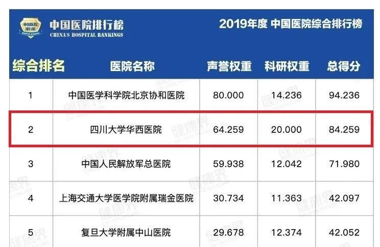 11月14日下午,复旦大学医院管理研究所正式发布2019年度中国医院排行榜,在综合排名方面,我校华西医院连续十一年排名第二,其中科研连续十一年得分满分,位列榜首。