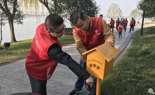 大家身穿苏州工业园区志愿者红马甲,准时前往活动起点——金鸡湖望湖角步行道,按照要求热情周到、耐心细致地开展活动。参与人员们在规定的环保服务线路上维护市容市政,避免行人乱丢垃圾、乱踩草坪;并对文明养犬小驿站进行日常维护、补充宠物粪便袋;还通过“苏州工业园区发布”微信公众号“微服务”—“啄木鸟”随手拍平台,拍照并上传金鸡湖步道周围的不文明现象。